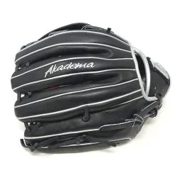 The Akadema Pro 12-inch black AMO102 baseball glove features a 12-inch pattern and an H-web design, with an open back and medium pocket. Made from high-quality Torino leather, the Akadema Pro 12-inch black AMO102 baseball glove is known for its durability, pliability, and ease of break-in.