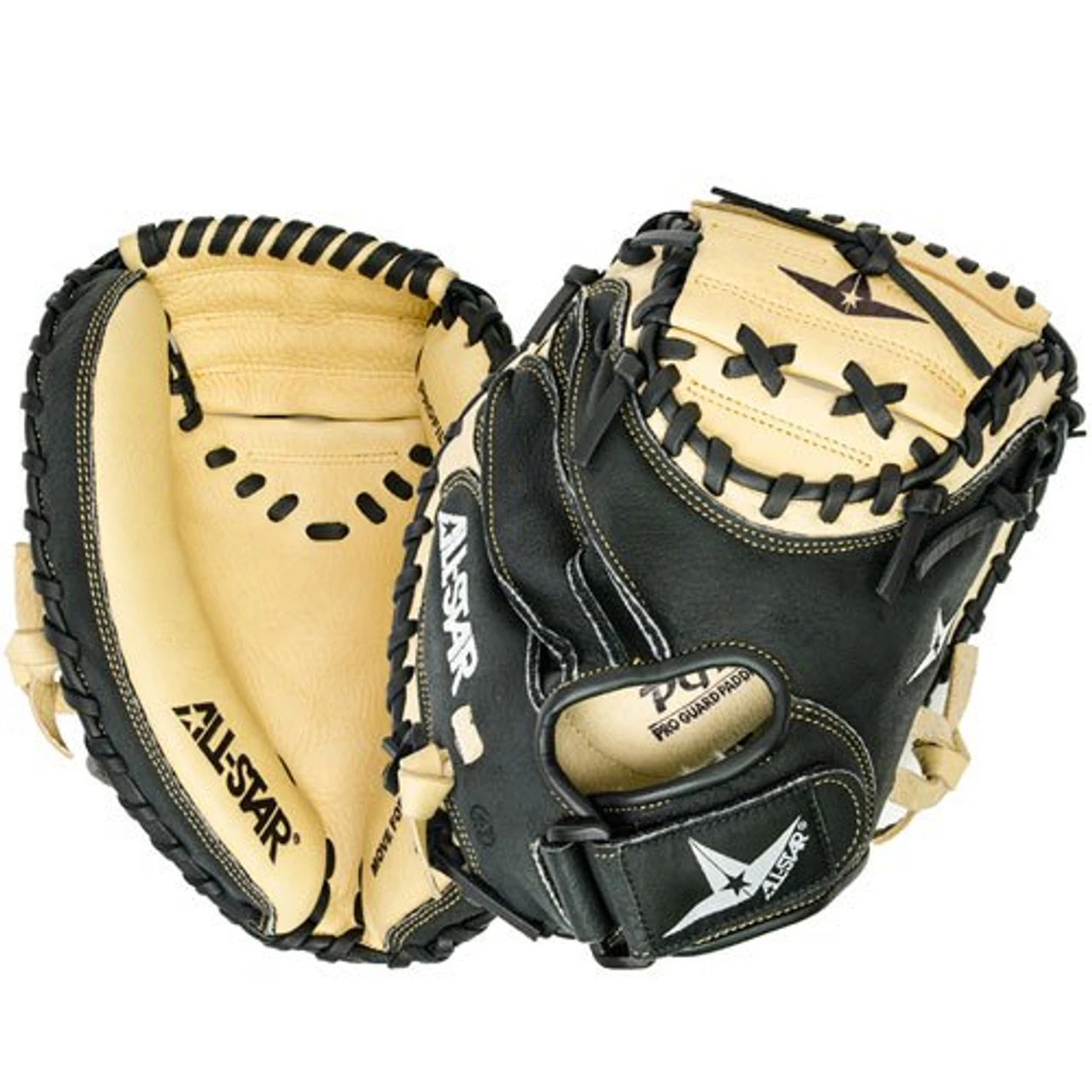 The All Star CM1011 Youth Comp 31.5″ Catcher’s Mitt is a great option for entry-level players. It’s designed to be easy to break in with pre-softened tan leather on the palm side, and has a durable black leather backing for added support and protection. The mitt also features a pro-formed pocket with Flex Action crease for easy closure, as well as a Velcro wrist closure for a snug fit. It’s 31.5″ in size and ideal for the catcher position, with a two-piece solid web pattern and open back.