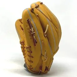 This classic 11.25 inch baseball glove is made with tan stiff American Kip leather. Unique anchor laces add style and flare to the design. One piece web, open back, light weight, and stiff leather make this glove great for infield or just playing catch.
