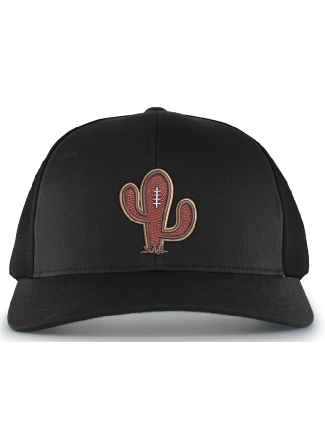 Black Trucker snapback mesh cap with real football leather material cactus on front. Gonzo âGâ on the side.