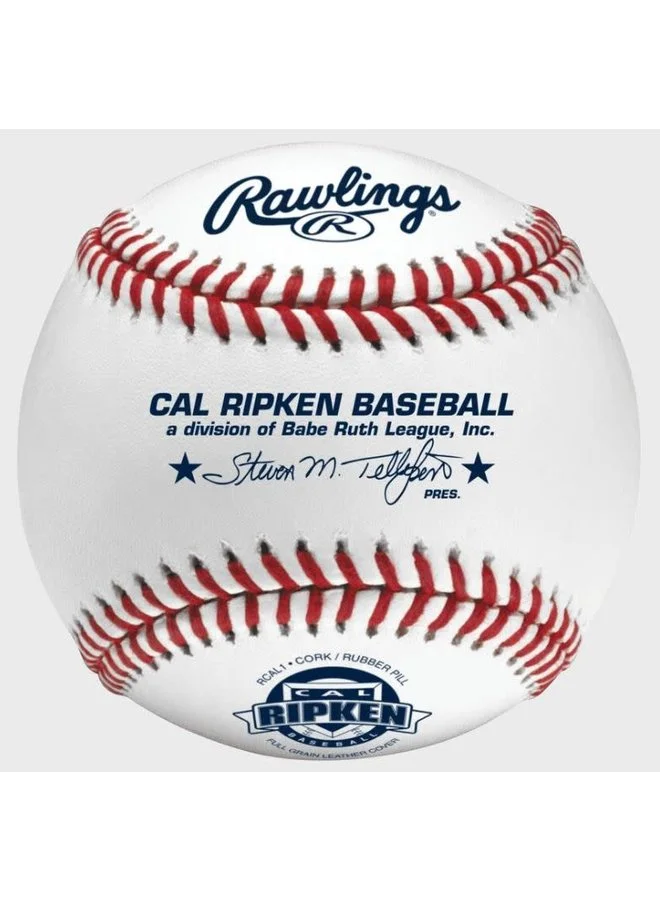 This baseball has Rawlings superstitch raised seams with full grain leather cover and composite cork and rubber center which make it perfect for the Cal Ripken Baseball League.