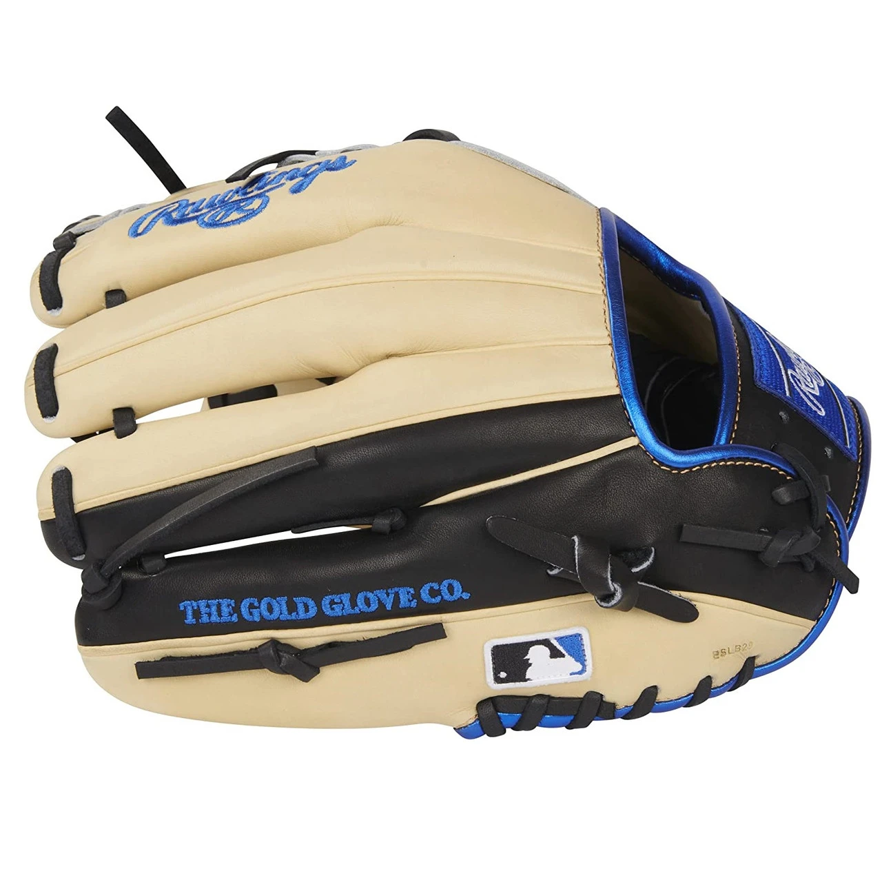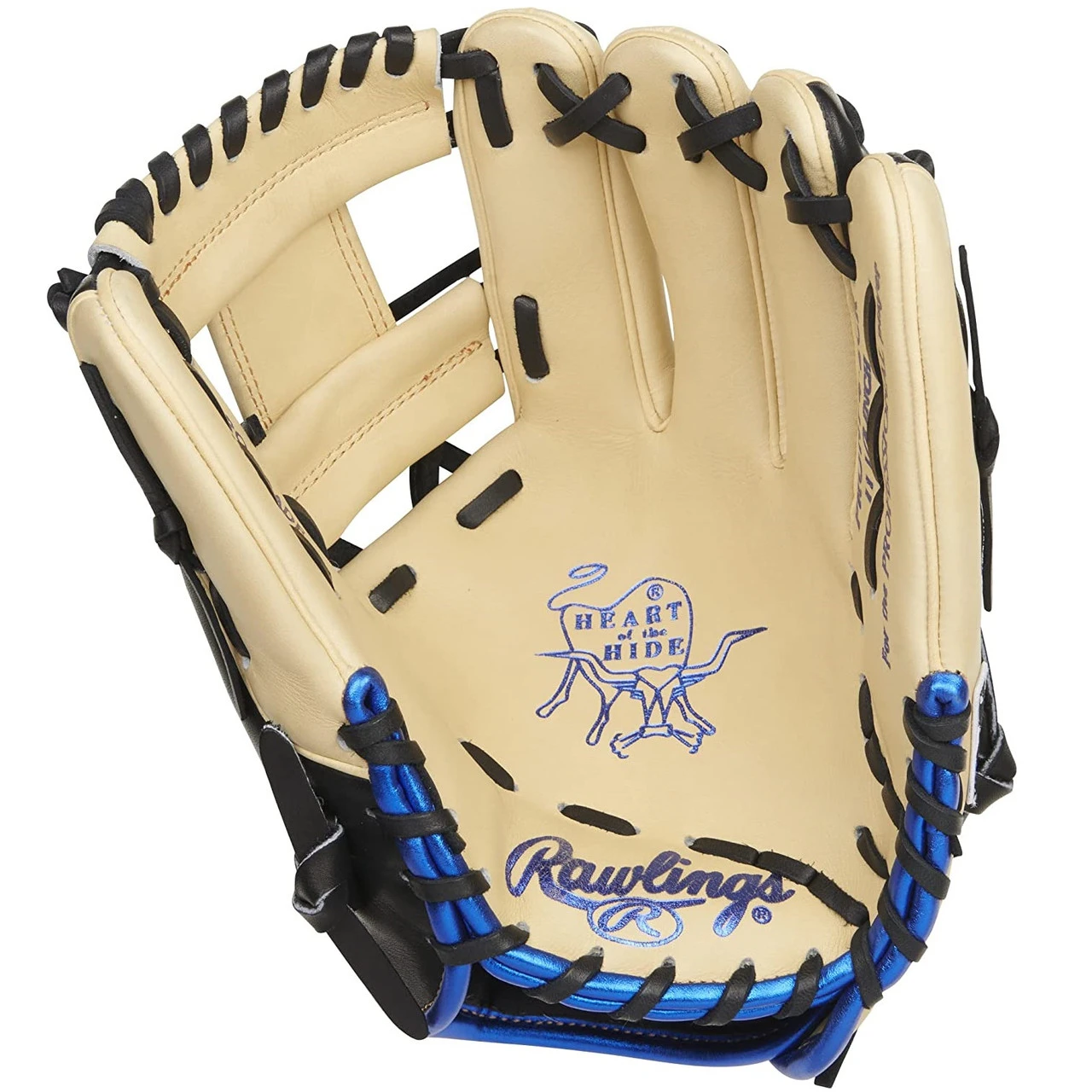 The 11.50 inch PRONP4-2CR is a NP4 pattern Pro I-Web glove is the perfect choice for infielders looking for a top-of-the-line glove. Recommended for players at the second base, shortstop, and third base positions, this glove is constructed from top-grade U.S. steerhide and features a camel, black, and blue colorway with Rawlings logos. The NP4 pattern is 11.5 inches in length, with a flat infield pocket at a standard width that closes the thumb to the middle and 3rd fingers, making it ideal for high school to adult-sized hands.