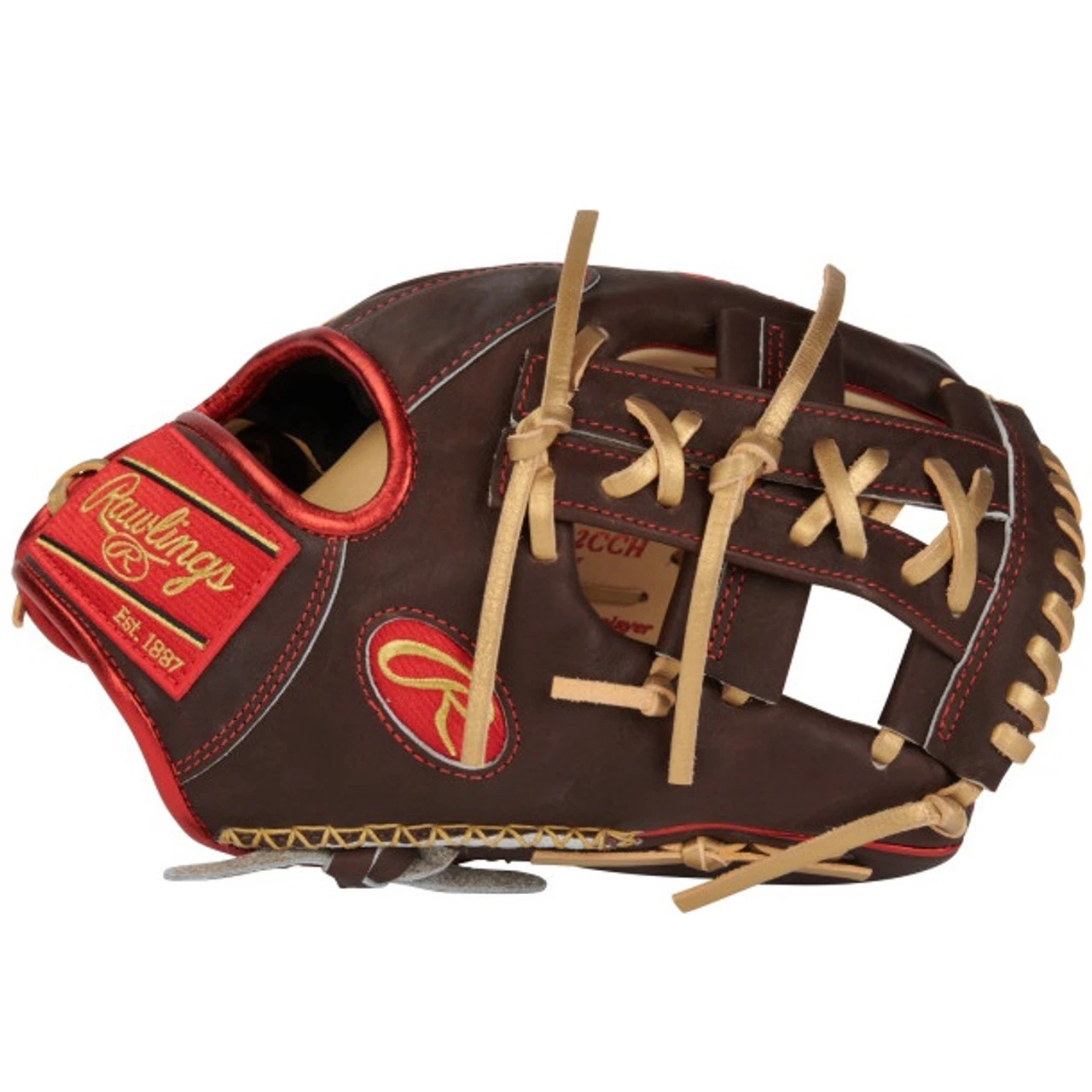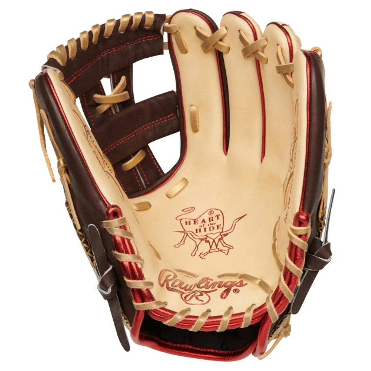 Introducing the latest addition to the game’s lineup: the Rawlings ColorSync 7.0 Heart of the Hide PRO205-32CCH baseball glove. Crafted with the utmost attention to detail, this 11.75-inch infield glove features hand-sewn welting, a signature of top-tier gloves worldwide. The sleek brown-and-camel color scheme is elevated with hints of gold and red, adding a touch of sophistication. The glove is built to deliver results on the field, with its 200 pattern and Heart of the Hide leather, trusted by professional players for decades. The split-single post web is also gaining popularity among big-name stars like Francisco Lindor. Known for its seamless combination of style and functionality, the ColorSync series sets the standard for performance-enhancing gear, and this glove exemplifies why.
