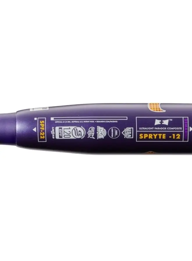 Take full command of the strike zone with the 2022 DeMarini Spryte (-12), the fastpitch bat with a light and easy swing to maximize barrel control and bat speed. Designed for young travel ball players in need of a lightweight swing, Spryte’s two-piece composite construction offers elite pop and a smooth feel. The Paradox™ Composite Barrel is soft and responsive on contact, and the Big D™ End Cap helps to reduce vibration and amplify barrel performance.